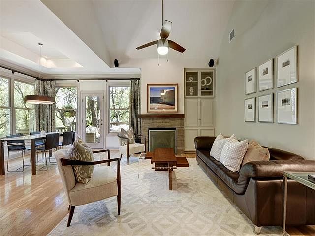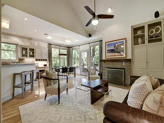 Striking renovations & custom interiors make this home move-in ready. Beautifully suited as a sophisticated lock & go option w/ primary level master & generous entertaining areas. Extensive updates touched almost every surface. Pillow cut limestone & stucco exterior with tile roof. Backs to lush greenbelt providing incredible outdoor living with over 800sqft of deck and a majestic tree canopy. Prvt gated community w/ common area amenities including pool, hot tub, Lake Austin access, & playground.