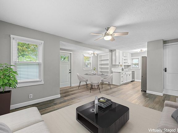 Large fenced-in backyardNewer shinglesVinyl windowsAttached garageUpdated flooringRear patioFront porch