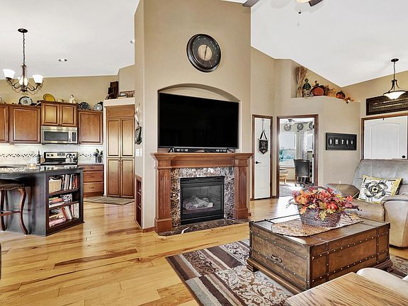 Beautiful patio home in gated community. Open floor plan, vaulted ceilings, beautiful wood floors and gas fireplace. Kitchen has a large granite island, pantry and all appliances included. Spacious master bath has large walk-in shower, jetted tub, walk in closet, heated tile floor and 2 sinks. Main floor laundry with walk through to master closet. A few extras include home was built handicap accessible with zero entry and extra wide doors, bonus room/loft above garage is 12x15, cement siding, secondary sump pump, Halo ozone air cleaner in duct work, Ecobee smart thermostat with room sensors, downstairs plumbed for wet bar, programable night lighting, home last painted in 3/2022 to name a few. New roof and gutters in November of 2022with 5 year warranty. Enjoy your free time while the HOA takes care of mowing, snow removal and trash. Great location just minutes away from shopping and restaurants.