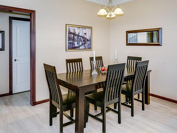 This stunning and pristine home features impressive open living areas and beautiful upgrades. The spacious living area, formal and informal dining areas and kitchen include great natural light, stylish cork flooring and easy access to the composite deck for grilling and enjoying the great backyard view. The living room also has an inviting corner gas fireplace. The kitchen is gorgeous and offers awesome cabinet space with granite countertops, tile backsplash, large island with eating bar, and stainless steel range/oven, microwave and dishwasher. The split bedroom plan features a huge owner's suite with large bayed area, door to the deck, and a well-designed and stylish master bathroom with whirlpool tub, oversized shower with newer glass doors, chic whitewashed wood-look flooring, granite-top vanity with two sinks, and walk-in closet. The second main floor bedroom features a vaulted ceiling, large closet and direct access to the hall bathroom. The hall bathroom includes a tub/shower. granite-top vanity, large linen/storage cabinet, and tile floor. The viewout basement has awesome space with a large family room and great wet bar with granite upper bar top, tile floor and space for a full-size refrigerator. The basement also includes an additional bedroom and a third bathroom with tub/shower, granite-top vanity and tile floor, and a large storage room. The covered deck faces the north and overlooks the fenced backyard and open common area - so beautiful!