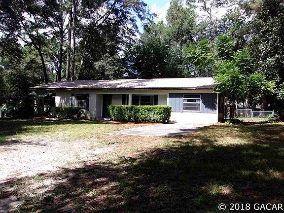 Contingent/Back up offers being accepted. Solid concrete block home located minutes away from UF, Shands, VA, shopping and entertainment. Walking distance to local elementary school. Nice quiet neighborhood with no HOA fees. Large fenced in backyard with lots of shade, perfect for BBQ's, and pets. Home also features a newer metal roof. Tile flooring through out home with NO carpet in the home for an added plus. The home has a large living room. Dining and kitchen combo. The kitchen has handy peg board for unique storage option. The master bedroom has a walk in closet and update vanity in the bathroom with a walk in shower. The hall bath also has an updated vanity. Inside laundry room is a huge plus and the washer and dryer are included. Lots of storage throughout home. The fourth bedroom can be used as an office, craft room or bedroom. Move in ready and priced to sell