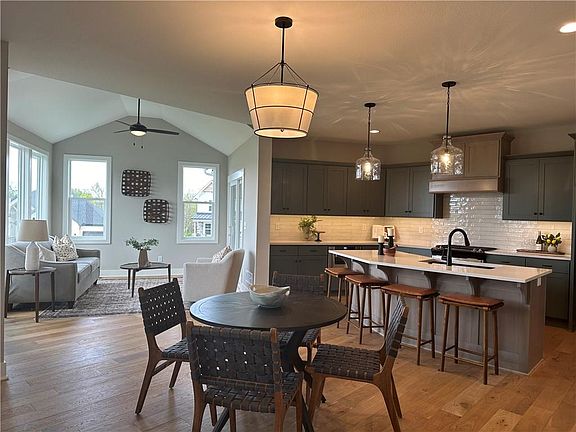 The stunning Hickory by Aspen Home Builders features a unique 2 story floorplan. The home showcases a wide open floor plan with real oak hardwood floors, large angled kitchen island, butlers pantry with under counter refrigerator, and an angled sun room/flex room with covered patio. Upstairs features a primary suite complete with a large zero entry shower. Home is furnished for your viewing pleasure. Furnishings are not included in the price of the home. Located in the Retreat at Hook Farms, Hunt Midwest’s newest and fastest-growing Lee’s Summit community. 65+ acres of green space and community pool. Wooded walking trails, community garden coming soon. Lee’s Summit schools including Lee’s Summit West attendance area. Convenient location close to everything. *Taxes, room sizes are estimated.