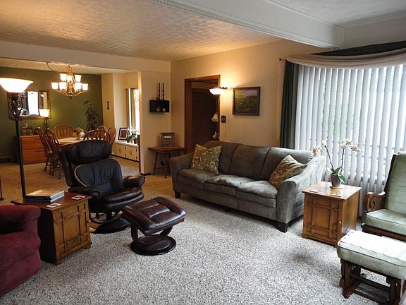Charming, recently updated, 3 bedroom, 1.5 bath home, with 2 car detached garage with lovely landscaped yard, sprinkler system, beautiful ledge stonework and paved circle drive. Inside features include formal dining with bay window, large kitchen with laminate wood floor, tons of cabnet space with center island and informal dining. Spacious bedrooms and bonus storage room. Enjoy open living room with luxurious custom blinds and access to large open deck for outdoor entertaining.