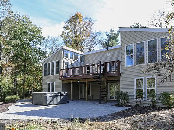 Looks are deceiving. This special property with a contemporary flair is built into a hill and the front entrance photo gives no indication of what awaits you. Step inside and be charmed by an open floor plan that provides opportunities to style your home to your needs. A vaulted ceiling, window filled living room is open to a spacious kitchen and dining area. A door and a slider give you access to a huge deck overlooking the woods, patio areas and a view of the creek far below. Kitchen has custom birch cabinets with full extension, soft close drawers, granite countertops, glass backsplash, under cabinet lighting and silgranit sink. Huge island with seating overhang has range built into one end with pull-out spice rack and a tray cabinet on each side and more cabinets. Ideal for food preparation, conversation, snacking and serving in the spacious dining area. Main bedroom is on this floor and has a large closet, private bath and door to the deck! Powder room completes this level. What's unique is that instead of going upstairs to the other bedrooms, there is a staircase that takes you down to the on-grade, walk-out second level that makes this such an intriguing house. This level has multiple rooms with doors to the gorgeous paver patio that is part of the wonderful outdoor living area. You get to decide how to use each room for your particular lifestyle. There is an ensuite bedroom/bathroom, another bedroom and a large open family room plus the laundry room (with a doggy door leading to a fenced area) and many closets. Your needs and lifestyle have plenty of options. Exterior is now filled with beehives (to be removed), mature landscaping, tiered areas of stone and paver walls, steps and patios (one with a firepit) and a charming chicken coop/shed with electricity! A spiral staircase connects the deck with the patio for extra convenience. If you are looking for a home that is not cookie cutter and is comfortable and beautifully designed, where nature, privacy and serenity rule, come fall in love. Nature abounds everywhere and from the house it feels like you are living in a treehouse watching changing seasons. Two-car garage, large driveway area and a stunning driveway entrance into this flag lot welcome you to a wonderful home that provides the best of indoor and outdoor living. This great location is close to the Northeast extension/PA Turnpike and commuting routes to Philadelphia, Princeton and NYC. Nearby are great restaurants, shopping and recreational opportunities, including a park with trails that is within walking distance. Come fall in love, move in and eat, drink, relax and be merry! Welcome home. 2020-12-30