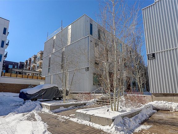 If you're looking for a home in LoHi that's steps away from the action but still quiet, look no further! The alluring appeal of this gorgeous multi-level townhome with modern stylings begins as you walk through the courtyard of aspen trees leading to the front door. Enter the home through the front door or attached two-car garage, and on the ground level you will find a spacious drop zone and a bedroom with an attached full bathroom perfect for a peaceful home office if you so choose. Head up the stairs and you will find the main level featuring a fantastic open concept kitchen and living room. The kitchen features a beautiful island with white quartz countertops throughout and an alcove for a large dining room table. The adjacent living room includes a large powder room, floor-to-ceiling windows, and a sliding glass door to a balcony ideal for grilling and alfresco dining (natural gas hookup installed). As you head up the next flight of stairs, you will find the spacious owner's suite with a walk-in closet and a stunning, modern bathroom featuring a large shower complete with a skylight overhead! An additional bedroom with an attached bathroom and a laundry closet completes this floor. Lastly, the final flight of stairs takes you to a private, beautiful rooftop patio perfect for entertaining your guests and watching summer fireworks! Most importantly this townhome is in the ideal location near the shopping and dining of LoHi's 32nd Ave, Confluence Park, and a very short distance to Downtown Denver via the pedestrian bridge!