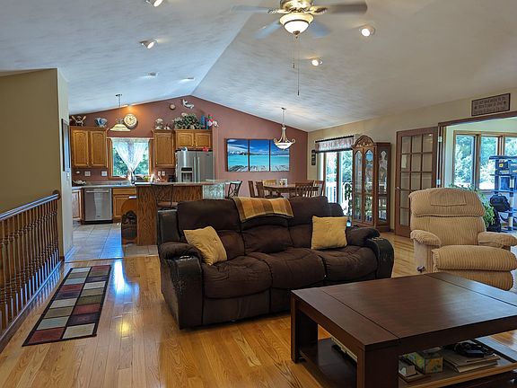 Welcome to Dakota Schools on 2 acres! This stunning walkout ranch offers a perfect blend of country living and convenience. This move-in ready home boasts breathtaking views on a beautifully tree lined lot. The main floor showcases 3 bedrooms, 2 full baths, an open concept living area with a spacious kitchen and dining area. You'll also find a convenient main floor laundry and sunroom. The walkout lower level is an entertainer's dream with a wet bar, family room with sliders that open up to a huge concrete patio. There is also a half bath, with the option to easily convert it into a full bath. Additionally, there is a bonus room on the lower level that could be finished as a fourth bedroom or office. This home also offers a heated 3 car garage and an oversized 4 car wide parking pad. Don't miss out on the opportunity to make this your dream home! New furnace and central air 2021. New Well pressure tank 2022. Garage doors have new rollers and springs.