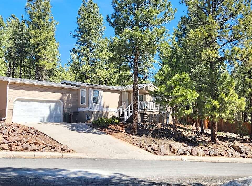 This is the home you have been waiting for! Featured in one of Flagstaff's most affordable neighborhoods, this 1,568 sq.ft., 3 bedroom, 2 bathroom home offers an open floor plan, an oversized garage with extra storage capacity, and a large, fenced-in backyard. With Flagstaff Urban Trail System access just around the corner and close proximity to NAU and downtown Flagstaff, this home will not be available for long! The master bathroom and main flooring have been recently renovated, and the roof was replaced in 2020. Both the large back patio and front porch are perfect for experiencing the beauty of Flagstaff amidst the stunning ponderosa pines, as well as entertaining.