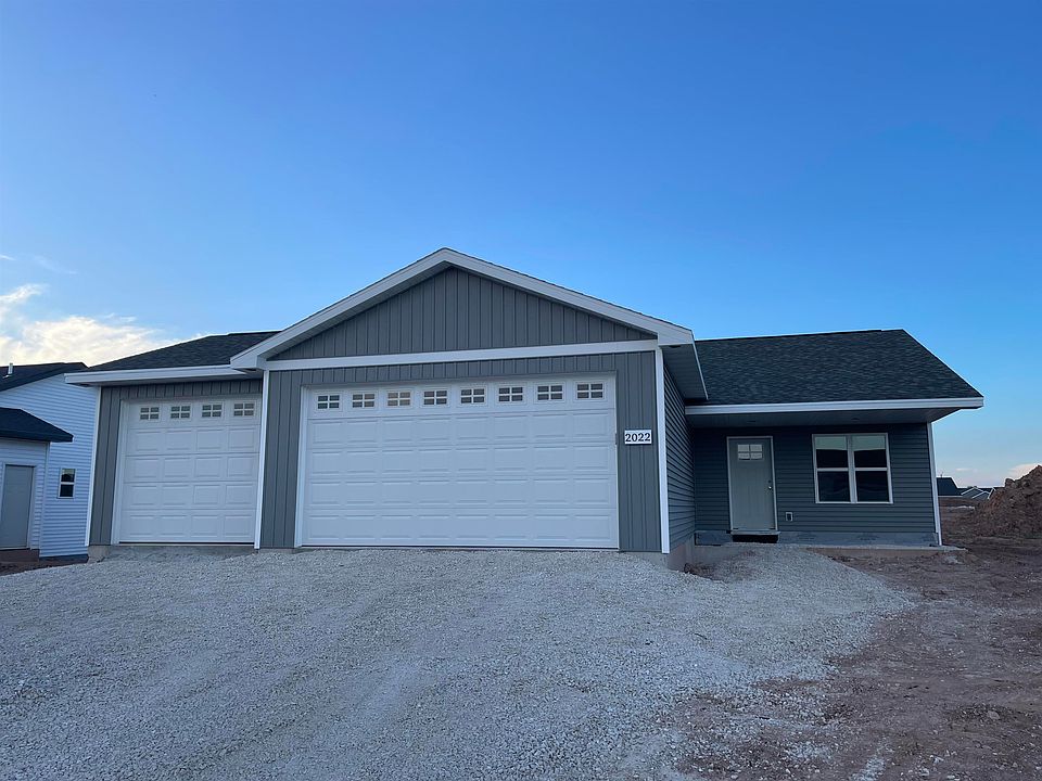 Welcome to this beautifully crafted 2-bedroom, 2-bath new construction ranch offering the perfect balance of form and function. Zero-step entry directly into the bright and inviting living room, where the open-concept layout seamlessly connects to the kitchen and dining areas—perfect for relaxed living or entertaining. The kitchen features a spacious island, walk-in pantry, custom cabinetry, and quality finishes throughout. The primary suite includes a private bath and walk-in closet, while the second bedroom and full guest bath offer flexibility for guests or work-from-home needs. A 3-stall garage provides ample storage and convenience. Modern design and thoughtful touches throughout make this home a standout.