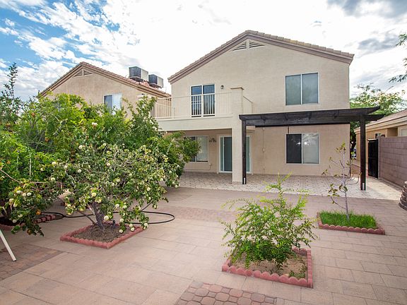 Step outside to your private backyard retreat, featuring a pergola and fruit trees perfect for outdoor dining, gatherings, or simply enjoying Arizona evenings.