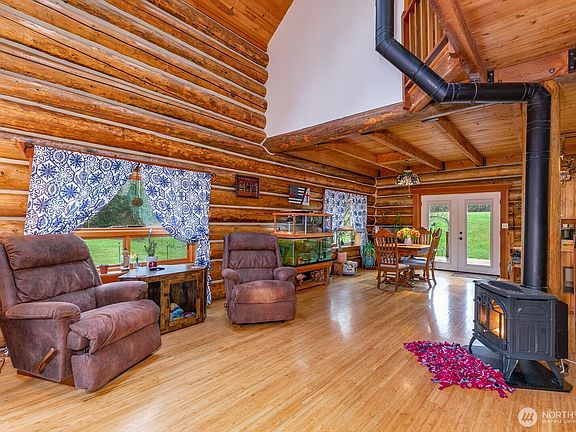 Beautiful 5.3 acres fully fenced, cross fenced and multiple shelters. Mostly level with a small slope in the rear. 36x 24 3 stall pole barn. Perfect for horses & other animals. Charming log home with a large detached garage that also had dedicated office space and a bathroom.l There is also an Approved Accessory 2 bedroom modular home in a private location way from the main home which is currently rented. The RV pad near the barn has sewer, water and power and large carport. Move in ready!