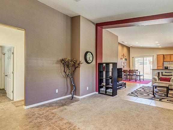 Take a look at this lovely home in Buckeye! Turn key move in ready! This 3 bedroom home built in 2014, has a two car garage and an open floor plan. Cozy great room with vaulted ceilings. The eat in kitchen has a breakfast room, granite countertops, upgraded cabinets, under mount stainless sink and 20in tile flooring t-out except bedrooms, stainless steel appliances including fridge and you can put in gas stove already plumbed, built in microwave, breakfast bar. Indoor laundry, den and guest room have access to a full bath. The master bed has a 3/4 bath (oversized shower) with a dbl elevated vanity. Enjoy the covered patio in the backyard, with a desert landscape view. This one is sure to sell quick, make it your new home today! Ask about Down Payment Assistance programs!