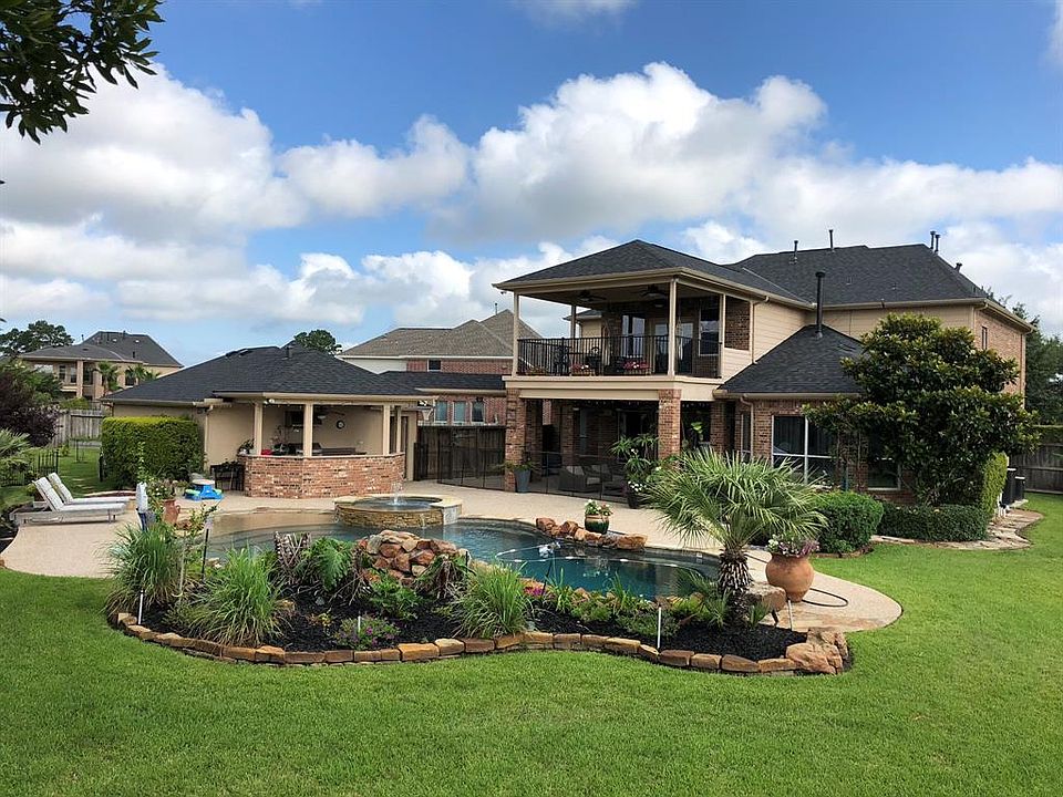 Huge lot at the end of cul-de-sac! Spectacular resort style backyard, outdoor living w/covered patio, oversize balcony, outdoor kitchen, crawfish boiler, PebbleTec pool w/beach entry & fire pit! Lots of upgrades/updates including new roof(May 2018), new outdoor grill(June 2018), master shower(January 2018), water heater-right($April 2018), water softener, Restoration Hardware chandeliers in foyer and dining, Minka fans, Bruce hardwoods installed throughout second floor, luxury Stanton carpet on stairs, wine refrigerator, landscaping with lighting system.