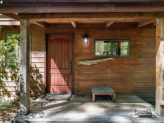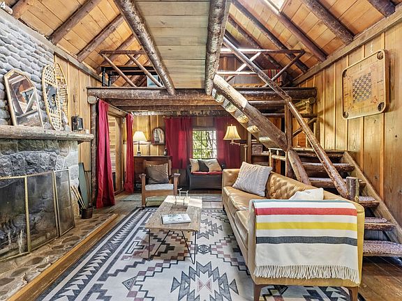 Escape to the mountain and relax in this cozy 1930's cabin on the Sandy River. Tucked away on a half acre you'll get lost in the charm and character of this home. The kitchen is well appointed with stainless steel appliances and a dining nook. The living room is the heart of the home with a large stone fireplace, vaulted ceilings with skylights, and a cozy reading nook by the stove. The open loft catwalk leads to two upper sleeping areas. The primary bedroom is on the main level along with the full bath and laundry. French doors lead to a wrap-around deck and a pathway to the Sandy River. The private river access is perfect for relaxing and cooling off on a hot summer day. Property improvements include new roof (2023), new plumbing (2023), tankless water heater, and two storage sheds for firewood and your mountain gear. With incredible access to hiking and skiing, this cabin has been a successful short term rental, financials available upon request. Home is being sold furnished with some small exclusions.