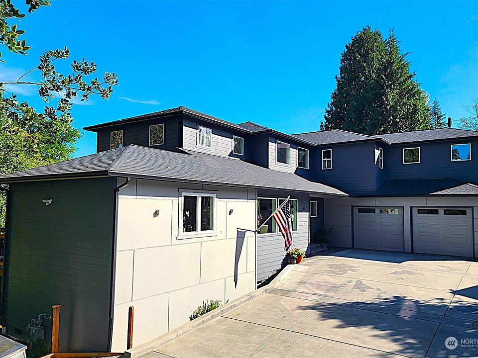 Gorgeous sleek design in this 2017 custom built contemporary, with adjoining, income producing ADU. Large lot, bordering greenbelt & babbling creek & across from popular North Creek Trail. Spacious 5 bedroom home with 9' ceilings, oversized kitchen island & great room concept for fabulous entertaining & relaxation on the adjoining deck. Radiant heated floors on both levels, the master bedroom is warmed by the gas fireplace & 5 piece bath with walk in closet. Expansive 2 car garage, allows for mechanic workshop & workout areas. Off street parking for 5+ cars. Don't miss the private access to the main level 1br, full bath ADU with radiant floor heating & its own parking or RV option. History of $1995/month. So much to see, more to appreciate!
