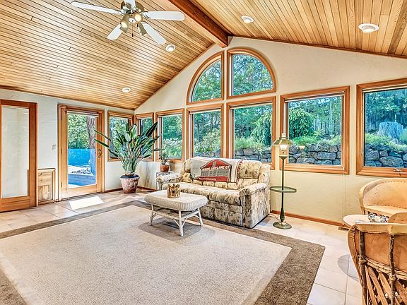 Enjoy privacy and elbowroom on a large .4 acre lot, professionally landscaped with mature trees, expansive decks, 2 water features with a stream running through the fully fenced back yard. The spacious, single level home is designed to provide views of the serene, mature landscaping and easily access the outdoor living spaces. A bright atrium welcomes you and leads into the heart of the home featuring an updated kitchen open to the dining area, large living room with a gas fireplace & skylights, a huge sunroom/bonus, master suite all with vaulted ceilings and 2 guest rooms. The large flat driveway offers opportunities for RV/toy parking. This private oasis is special and a must see!