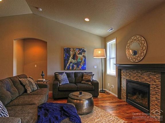 New NW Bend community close to parks, hiking trails, and the Deschutes River. Easy access to shopping and Bend Parkway. Main level living, all bedrooms downstairs, large bonus upstairs. Features include: engineered hardwood throughout main level, large covered back patio, tile shower, maple cabinets w/ under cabinet lighting, quartz countertop in kitchen, and 4ft garage extension. Exterior to include masonry, gutters, full-lap siding. Pictures of similar home.