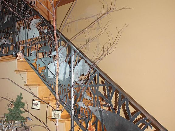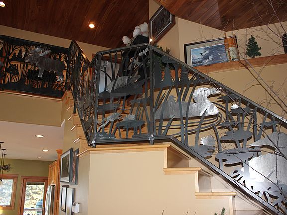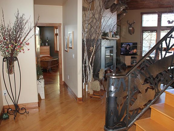 Unique custom 5BR/5BA home loaded w/special features: 2-story peaked LR ceiling, custom KI & laundry cabinets. Pella windows w/blinds in panes, new poured concrete landscape edging, 3 full suites-Mstr & 2 more for kids or guests, wood & tile floors, 37 Ft Artisan commissioned stair banister featuring MN wildlife cut-outs, close to 700 SqFt of Bsmt storage, 3-stall garage w/heat &
