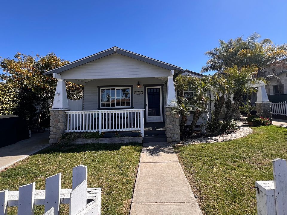 Bay Park Village! Awesome 2 BR + office, 2 Bath House with 1 car garage, large fenced yard, inside laundry room, Solar & A/C! Walkable location 1 block from Luce, Siesels, Bay Park Fish Co, Poseidon, Yoga & Baci. Easy walk/run to Mission Bay. Easy access to downtown, beaches & airport. Great curb appeal with white picket fence front yard and covered porch, private side yard and large back yard with garden beds. Home is remodeled with forced air heat and A/C. Solar will keep your SDG&E bill low. Lots of windows and light, hardwood floors, remodeled kitchen with granite, high-end appliances & cozy window seat/breakfast nook. House was 3BR but one room was opened up to create a nice open living/dining area. Currently 2BR inside plus an extra 11x11 detached room (great for an office or hobby room) behind the 1 car garage. The extra room behind the garage should not be used as a bedroom. Main house also includes a 22x14 enclosed tiled sunroom/family room. Master bedroom is spacious (17x13 with private bath and walk-in closet). Second bedroom is 11x11. Inside laundry room with washer & dryer. Prefer no pets, but negotiable. Lease term negotiable. Wonderful home and neighbors. Looking for a tenant that will care for our home and yard like their own and enjoy it as we have. Requirements: Clear background/eviction record, credit check Show 2.5x monthly rent as income All occupants over 18 need to be on the application and lease. $5000 Deposit (1 month rent) No Smoking. New carpet going in primary suite on 3/4, 1 exterior door being replaced 3/8. After that, ready to turn over keys. Pls note one neighboring property is under construction so this is probably not ideal for a day sleeper. Lease term and pets negotiable. Solar panels keep SDG&E bills low. Gardener every other week paid by owner.