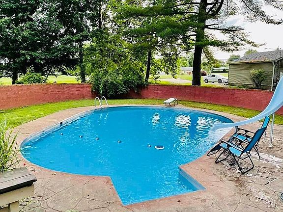 This is seriously a “One of a Kind” home and property. 4 Spacious Bedrooms – Master has a large walk in closet. 2.5 Bathrooms ~2 acres nestled into scenic Clifty Falls State Park, just a beautiful short walk to the waterfalls. Oak hardwood floors with a natural wood fireplace on the main floor. Beautifully finished walkout basement with gas fireplace, tall ceiling height, built in entertainment center, dry bar, lots of closet and shelf storage, tiled entranceway, plus more. Oversized (1,008 sqft) 2 ½ stall HEATED garage with loft storage, workbench, built in dog kennel, mower bay door, plus more (and yes, your large trucks, vans, or SUV’s will easily fit with tons of room to spare). Lots of yard and woods to enjoy including mature trees like maple, walnut, and ginkgo to name a few plus a few plum, pear, blackberry, and mulberry to harvest if desired. Inground pool with diving board and slide – pool cleaning robots stay ?? Over 800sqft of decking overlooking the pool and exquisite scenery. Over 400 sqft of covered front porch Cost efficient natural gas heat to home and garage with central air for cooling. Stainless appliances, gas stove, modern high efficiency washer and dryer all stay. Location is simply amazing, you get to enjoy the quiet country setting yet are literally only a few minutes from the Madison hilltop and downtown amenities!!! Better Hurry, you don’t want to miss this!!! Plenty of Pictures Coming Very Soon.