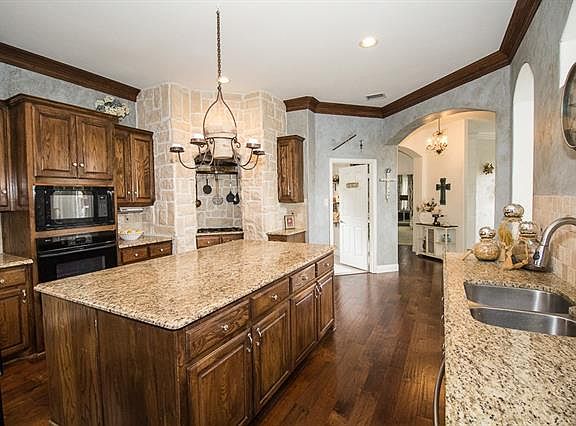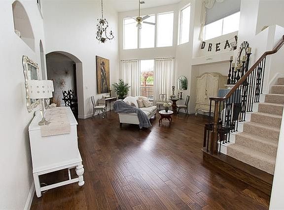 In Lovejoy ISD! Fabulous home features Hickory hardwood floors on main level. 4 bedrooms, 4 full baths, Ceramic tile in the 4 full baths. Staircase with oak step and rails,wrought iron spindles and a framed picture at staircase revealing a hidden children's playroom. The kitchen has granite counter tops, tumbled marble back splash, walnut cabinets. Double crown molding