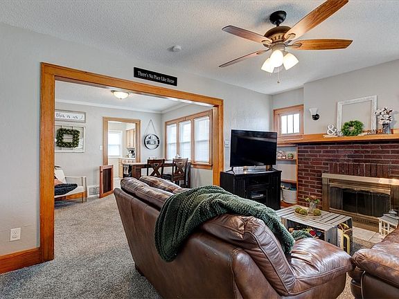 This updated 2 bedroom one bath home has a lot to offer. The covered front porch provides a comfortable space to relax and watch the passing traffic. The interior of the home features beautiful craftsman woodwork and a stunning brick fireplace in the living room, which adds warmth and character to the space. The formal dining room is a great addition to the home, providing ample natural light and a spacious area to entertain guests. The updated kitchen and bathroom add modern convenience to the home. The major updates to the home, including the re-wiring, new stop box, copper plumbing, new roof, and hot water heater, as well as a freshly painted exterior provide peace of mind for the homeowner, as these are all important components that contribute to the home's overall functionality and safety. Additionally, the energy-efficient furnace and A/C system help to keep the home comfortable while minimizing energy costs. Radon System installed 2 years ago.