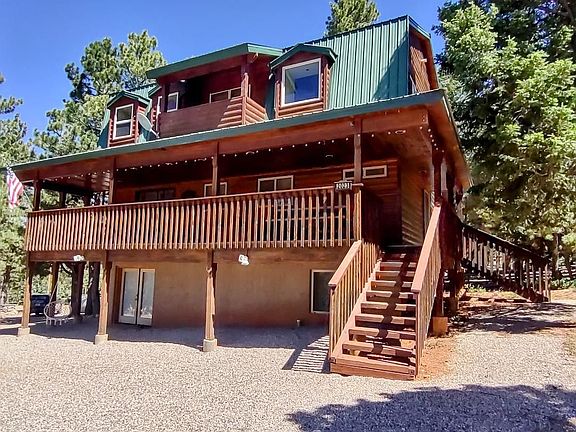Fully Loaded/Turnkey Well Maintained Mountain Retreat! Beautiful Cabin and Views! 3 Level- 4 Bed/3 Full Bathrooms. Large Kitchen with all Appliances Incl., Center Island, Wood Cabinets, Bar with Seating. Finished Walk Out Basement with Bedroom/Sleeping Area and Walk In Closet, Full Bath and Laundry Room. Upper Level-Guest Bedroom and Large Primary Bedroom with A Propane Stove, Balcony, Walk In Closet. Primary Bath has Jetted Tub. Wrap Around Deck to Take In All the Views and Fresh Air and Nature. Year Round Access. Pull Through Driveway. Attached Garage and a Bonus Lofted Barn/Shed. Sits on almost a Half Acre with Plenty of Room for RV's and Guest Parking. Comes Furnished/Turnkey and with Snow Mobiles!! Ready to Move In and Enjoy! This Cabin Will Not Disappoint!