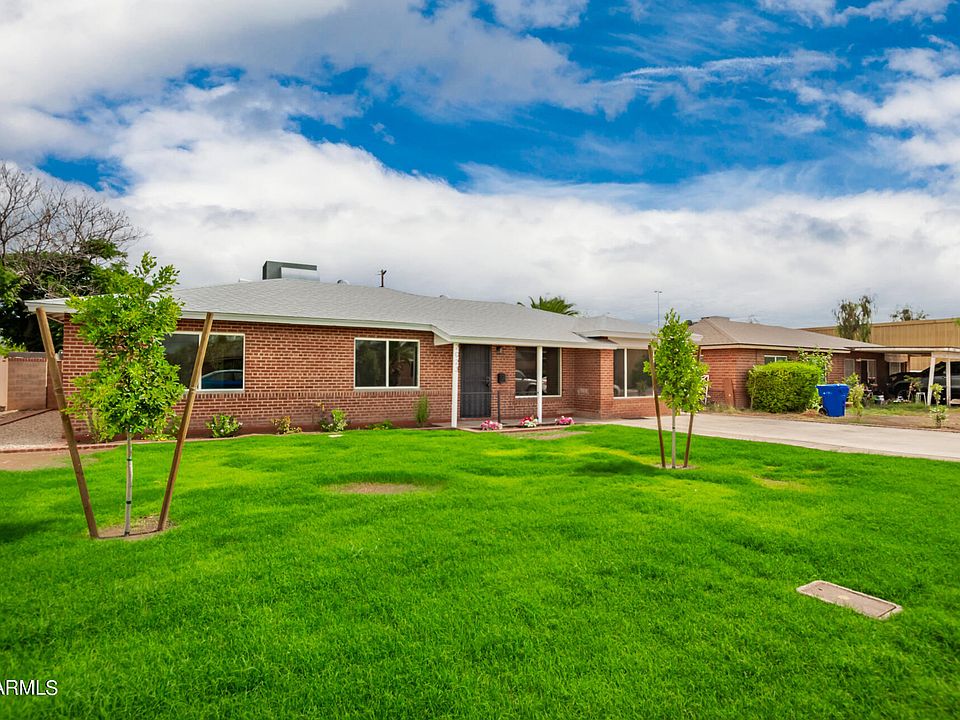 Look no more! Comfort meets functionality in this charming, TASTEFULLY REMODELED home in a desirable Phoenix location. A grassy front yard & a front porch are just the beginning. Discover the formal living & dining rooms paired with layered crown molding! Natural light filled the spaces, complemented by a fresh neutral palette & tile flooring w/plush carpet in bedrooms. The renewed kitchen has SS appliances, quartz counters, recessed lighting, and ample white cabinetry. Two main bedrooms! Both feature a walk-in closet & a private bathroom w/travertine step-in shower. You'll LOVE the spacious backyard, an ideal spot to relax or entertain! It features a covered patio & a fenced sparkling pool for year-round enjoyment. Plenty of room for an extra seating area or a home garden. Move-in ready!