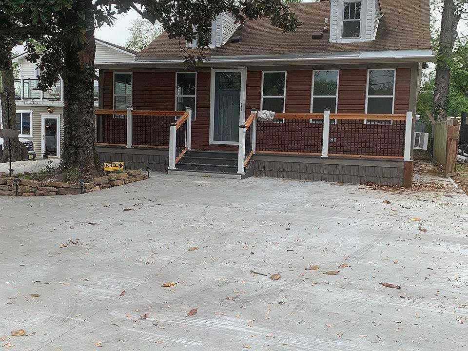 Concrete driveway can accommodate 6 vehicles or more.