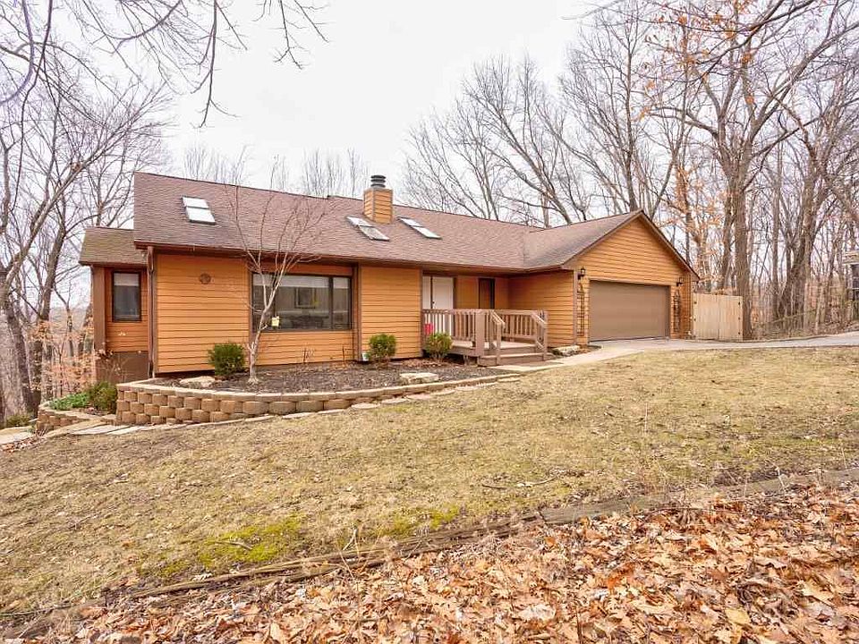Enjoy breath-taking panoramas of the Iowa River and surrounding woods from this 4 bed, 2.5 bath ranch walkout home on .66 acres, just 8 minutes from downtown Iowa City. This special property has a sunlit, open layout featuring an expansive LR/DR with cathedral ceilings, skylights, built-in hutch and gas fireplace, plus a main floor FR. The bright eat-in kitchen is surrounded by windows in a greenhouse style, providing sweeping views of abundant trees and wildlife, such as deer, turkeys, foxes & eagles. It also boasts granite countertops, stainless steel appliances, a double oven, and the most efficient pantry you've ever seen. The enormous primary bedroom includes two ample closets, a spacious bath and glass doors opening to the 50' long deck. The lower level includes 3 ample BRMs - one large enough to be a rec room - full bath with tiled shower, huge workshop with storage, big cedar closet and generously-sized laundry room. Flagstone patio with fire pit, second deck, lovely landscaped yard, workbench in garage, two extra parking spaces, power humidifier, setback thermostat. Shared tennis courts and stocked fishing pond. Being sold in as is condition.