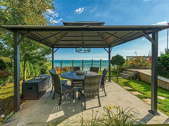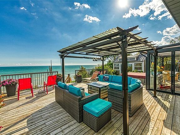 Captivating Port Dover 2 bedroom Waterfront Lakehouse with 89.57 feet of sought after waterfront on the shores of Lake Erie. This exquisitely presented property features breathtaking views and access to lower level Lakeside deck and multiple entertaining areas for a true dream backyard Oasis. Great curb appeal with oversized paved driveway & carport, Can Exel engineered siding, tastefully landscaped, solid concrete and steel breakwall, gorgeous 3 season sunroom, 2 sheds / bunkies which are insulated with hydro for extra guests or games room, & expansive decking with pergola & separate gazebo area. The open concept main floor layout is highlighted by custom designed “Darbishire” kitchen with quartz countertops & large island, great room with wall to wall windows & vaulted ceilings, 2 bedrooms including primary suite with ensuite bathroom & access to sunroom, additional bathroom,desired MF laundry & welcoming foyer. Extensively renovated in 2016 with new flooring, decor, wiring & panel, insulation, furnace, lighting, fixtures, & more. Conveniently located minutes to all the Incredible amenities that Port Dover offers including restaurants, theatre, shopping, stunning beach, wineries, & easy access to other Norfolk experiences. Truly Irreplaceable property, setting, & home. Lake Erie Waterfront Living is a Lifestyle that must be Experienced!
