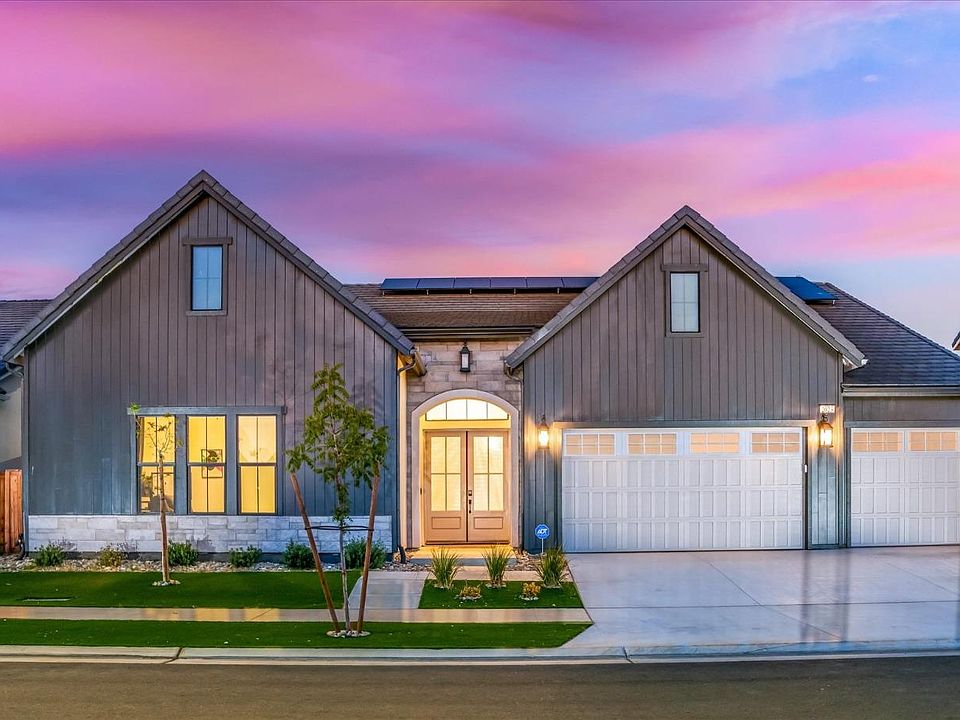 This immaculate, modern home is located in the award-winning Clovis Unified School District. You'll be welcomed by high ceilings and spacious, open areas perfect for both entertaining and everyday living. The thoughtfully designed kitchen features G.E. Monogram appliances, a 6-burner gas range with griddle, a discreet under-counter microwave, and elegant two-tone cabinetry. The owner's suite includes a versatile sitting area that can be used as an office, dressing room, or nursery, along with a generously sized walk-in closet. The beautifully appointed bathroom offers granite countertops and a freestanding soaking tub. Additional highlights include ample storage in the bedrooms, a spacious laundry room, and several upgraded features such as instant hot water, upgraded plank-style tile flooring, prewiring for a car charger in the garage, and a newly landscaped yard. Smart home features include a thermostat, garage doors, a Ring doorbell, and a smart front door lock. Leased solar panels provide energy efficiency. This home is conveniently located near Clovis Community College, just a 5-minute drive to The Row or The Meat Market, and close to the scenic 2.5-mile Enterprise Trail. Call today to schedule a showing!