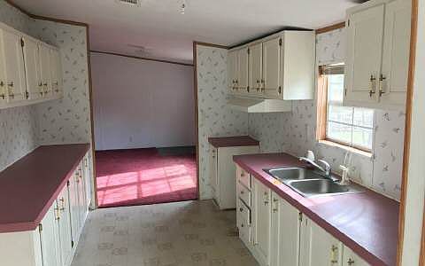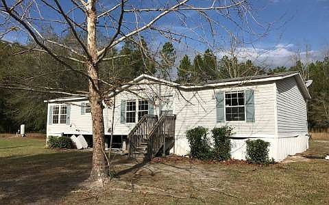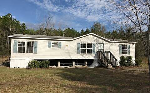 Located fairly close to town, but lots of space with 5 acres. Mostly all cleared with perimeter trees for privacy. Big living room with fireplace. Needs some minor repairs on skirting, but check it out. Very minor deed restrictions. Ask for copies.