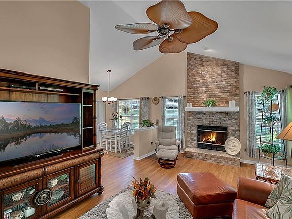 Welcome to this stunning 3 bed 3 bath home boasting nearly 2,100 square feet of living space. Situated on a corner lot with mature trees creates a park-like setting. The pavered driveway leads to the two side entry car garage, and the brick façade is lined with lush landscaping. Inside you'll find an open floorplan with vaulted ceilings filled with natural sunshine. Formal living and formal dining rooms join the foyer. The family room is centered around the brick wood burning fireplace and views to the backyard. The kitchen includes granite countertops, stainless steel appliances, built-in desk and adjacent breakfast nook. The Florida Room overlooks the private backyard and offers additional space for entertaining friends and family. The master suite opens to the Florida Room, and the master bath includes dual sink vanity, soaking tub, and glass enclosed walk-in shower. Second master suite features en-suite dual sink vanity, soaking tub and glass enclosed shower. The third bedroom also opens to the third bath. Located close to shopping, dining and easy access to major roadways including SR-429 and everything that Central Florida has to offer. Call now to schedule your showing!
