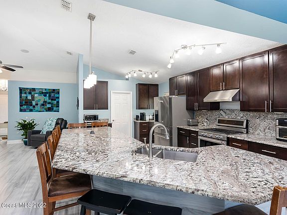 Open House cancelled, Contract pending. Total kitchen renovation and redesign. This kitchen is the heart of the home. Expansive center island seats 10. Cabinets have been added, granite counters, stainless steel appliances including a gas range and there is a coffee station with a wet bar. Wood plank ceramic tile throughout, 5.5-inch base boards, tastefully updated baths. Bright open floor plan, high ceilings, 2022 roof, newly installed impact windows with the exception of the sliding glass door, 2 small master bath windows and transit window above front door. Trussed screened patio and fenced yard. Situated in gated Sheridan Lakes. Ideally located, easy access to I-95. Close to Shopping, restaurants, theaters, 20 minutes to beaches. apx 1.15 hours to Orlando.