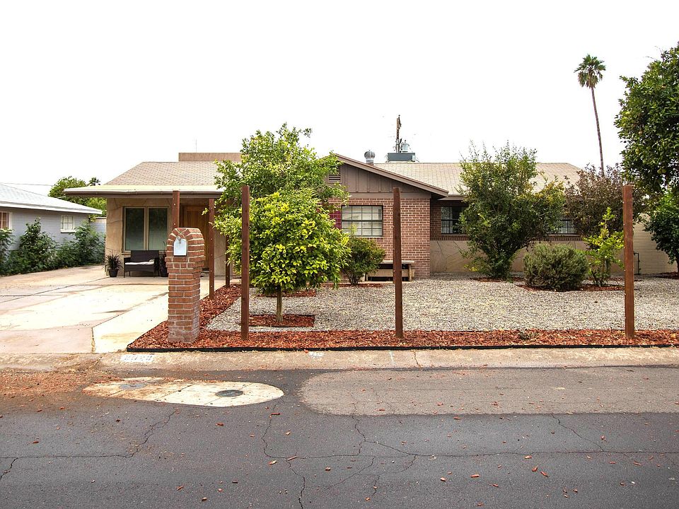 Central Phoenix home with a lot of character in a prime location that is walking distance to the Valley Metro Rail Station and the Spectrum Mall while being minutes away from I-17! If you have a green thumb, this house is for YOU, it offers lots of tree and vegetation: 2 mature orange trees, pomegranate, peach, tangerine, blood orange, 5 grapevines, artichoke, and rosemary. The house has a sustainable front and backyard with a distinctive water fountain and a wood crafted entry door. The main house features hand-carved Cantera stone, slate flooring, double-sided fireplace and 3 skylights throughout the house. Chef's kitchen boasts granite countertops, huge breakfast bar for additional seating, and stainless steel appliances. Walk-in closet, steam shower, jacuzzi tub and double vanity sink makes for a great master suite! All bathrooms have stone tile work from floor to ceiling with inset mirrors. The backyard of the home is very unique and features a fountain, fully mature orange tree, raised concrete trellis area, and outdoor fire-pit! Extended driveway, RV GATE, and a GARAGE! NO HOA! HURRY, this one won't last long!