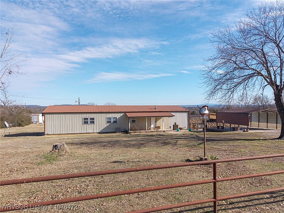The property is adaptable to a variety of needs, featuring livestock facilities, a concrete boat storage area, a two-car carport, and a metal shop with a loft that includes water and electricity. Additional conveniences comprise a storm shelter and a barn/show pen, both equipped with water and power access.