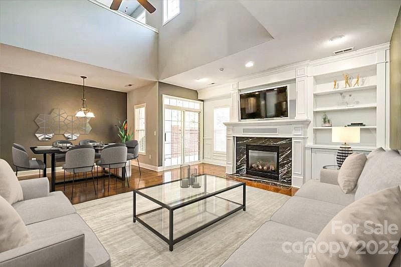 Sought after St. Philip Square/Jetton Cove community townhome/condo chartered, in convenient Cornelius. Take a stroll to restaurants and grocery or your favorite coffee shop! Enjoy hardwoods on entire main floor and the large Primary BR. Primary bath has updated cabinetry, dual sinks and granite counters, large shower and sep. garden tub and walk in closet. Formal DR and Breakfast area allow you to accommodate lots of guest. Enjoy the gas log fp surrounded by custom woodwork and cabinetry. Kitchen is open to Great Room and offers ss appliances, tons of counter space and a pantry and granite. Your 2 car garage is just a step away and your laundry room is conveniently also on main floor. You have a covered front porch and rear patio and privacy brick wall courtyard. Upstairs you have 2 larger bedrooms and a full bath and loft area. You will love the 2 storage areas offered which are both walk in and one is large enough to make an entire addl bedroom. Priced $21K below last same unit!!