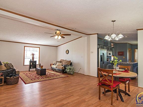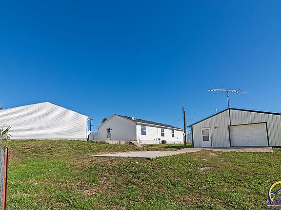 This home is between I-70 and K-10, Lawrence and KC on blacktop. Recently remodeled with new flooring, new asphalt roof and paint. Huge master bedroom, bathroom, closet suite. Oversized garage + a 36' x 24' shop all connected by concrete patio + another outbuilding for yard supplies. Concrete pad was used for the yard outbuilding, but most recently had an above ground pool (see aerial picture inside the home). Detached shop has an abundance of wiring, air compressor line, heat & air sources & ventilation.