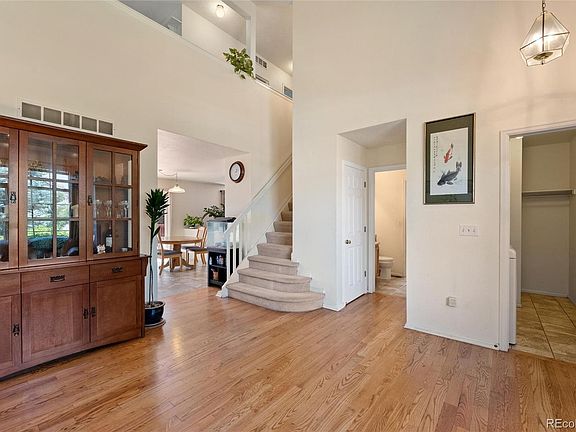 You will fall in love with this move-in ready home nestled in the heart of Park View Meadows! Upon entering the home you’re greeted by a grand staircase, hardwood floors, two story vaulted ceilings, and tons of natural light. You’ll love the well maintained kitchen with tile flooring, newer stainless steel appliances, new A/C & Furnace (2022), New roof (2023), new exterior paint and a sliding door looking out to the backyard. The family room is a gathering place for guests and features a gas fireplace, large windows, and wood floors. On the main floor, you’ll also find a bedroom with a ¾ bathroom, perfect for guests or a home office. Upstairs, the primary bedroom offers an attached 5 piece bathroom, plus there’s two additional bedrooms, a full bathroom, and a loft! Enjoy the additional space in the unfinished basement with tons of room for storage, a home gym, or room to finish it exactly how you want! The recently repainted deck and landscaped backyard is the perfect spot for spending your summer evenings. This home has easy access to E470, Southlands & DIA making commuting to all that the Metro offers a breeze. Walkable to Timberline Elementary in the coveted Cherry Creek School District. Give us a call to schedule your private showing today!