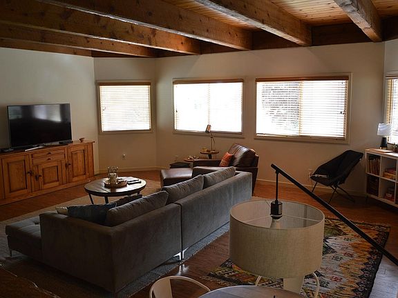 This fully furnished, single level home is available to rent on a monthly basis from August through May. Open living with stunning wood beam ceilings and rock fireplace wall. A classic mountain home feel updated with modern amenities. Covered deck. Fully fenced back yard. Forced air heating and cooling provided by a heat pump. Wi-fi and cable television provided. All utilities paid by owner. Located a short distance from the Deschutes River Trail and Sawyer Park. The minimum rental period is 30 days. Security deposit equal to one month rent will be collected before occupancy.