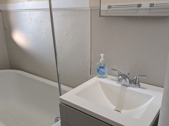 Newly remodeled 5-room, 2-bedroom apartment on second floor of historic building located within Granite City's downtown Art & Entertainment district. High ceilings and tall windows provide an abundance of natural light. Updates include refinished hardwood and new laminate plank flooring, a new bathroom vanity, and new kitchen cabinets & countertop. The large kitchen is equipped with a gas range with hood, refrigerator, and generously-sized pantry. There is plenty of storage available in a linen closet and three other closets, one of which is a large walk-in space. The library, cinema, shops, and Civic Park events & festivals are all within 2 blocks. Off-street parking is available. Rent is $800 per month with $800 deposit. Landlord pays for water, sewer, and trash removal. Tenant pays for gas & electric. We do not accept housing vouchers on this home. Application must be completed prior to showing by all occupants over the age of 17. Landlord pays for water, sewer, and trash removal. Tenant pays for gas and electric. Off-street parking is available. Deposit and first month's rent required up front. One year lease.