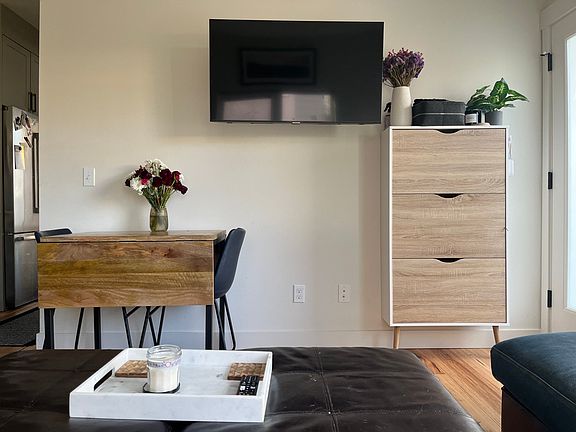 Available NOW. Reach out for a showing or virtual tour! Recently reduced to $3,200/month don't miss this rare opportunity to live in a modern, well-appointed townhouse in the heart of Central District. Located on a quiet cul-de-sac, partially furnished, and move-in ready, this home offers high-end finishes, A/C, and easy access to downtown, Capitol Hill, and several local hospitals. This new construction light-filled 2 bed, 2.5 bath "dual-master" townhome (1,048 sq ft) was built in 2021 with thoughtful design and high-end finishes. This is the front unit of a 7-home community, giving you more windows, extra privacy, and only one shared wall (well-insulated you won't hear your neighbor). The home spans three stories, with a bedroom on each (2nd, 3rd) floor, plus a private rooftop deck with sweeping views of Mt. Rainier. Features include: -Partially furnished (Rooftop: couch, firepit, edison lights. Upstairs room: Wall-mounted TV. Kitchen: bar shelves, shoe cabinet, kitchen roller island, large TV mount) -Open layout with hickory hardwood floors -Carpeted bedrooms, each with a private en suite bathroom -Rooftop deck with sweeping views of Mt. Rainier -All new stainless steel Bosch appliances, large Samsung W/D -Programmable front door keypad + Ring doorbell -Plenty of free street parking -Tons of closets and storage for gear! Tons of natural light from large windows with top-down/bottom-up blinds for added privacy (blackout shades in bedrooms). Ideal for a couple wanting a home office, gym, or guest space or two roommates wanting equal bedroom setups. Landlords are local healthcare professionals responsive, respectful, and committed to maintaining a great rental experience. Landlord is seeking qualified, reliable tenants and ideally a lease term of 12 months or longer. 12-36 month lease. Renter is responsible for all utilities: electricity, water/sewage/garbage, natural gas (just for stove, hot water heater, and fire pit). No smoking allowed. Up to 1 adult dog allowed. Free street parking. Renter is responsible for utilities. Dogs allowed, no cats. No smoking. One time cleaning fee ($250) upon move-in which is put toward professional deep cleaning. NO other application/administrative fees to move in, just first month's rent and security deposit.