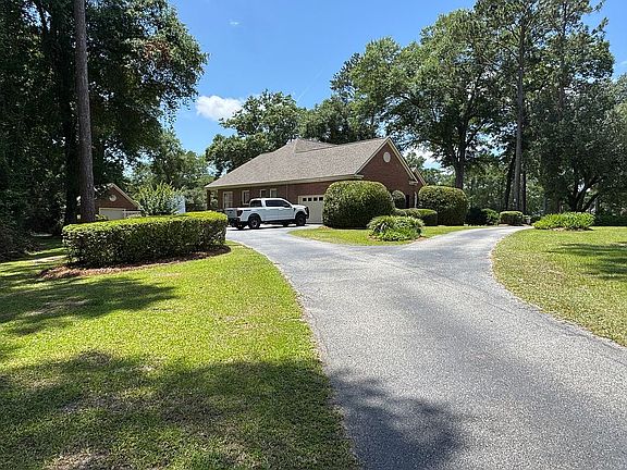Step into this stunning home nestled on 1.5 acres in Douglas Hills in Bainbridge, Georgia, where Southern charm meets elegance and comfort! Located in a family-oriented community known for its wonderful schools and friendly neighbors, this home is perfect for families, professionals, or anyone ready to embrace their dream lifestyle. The inviting beautifully landscaped front yard features an in-ground sprinkler system and welcomes you as you enter the paved circular driveway. The front entryway features a large palladium window which allows sunlight to illuminate the foyer and dining room areas. Just beyond the foyer through French double doors is a spacious home office, or if preferred can be easily transformed into a formal living room. Adjacent to the dining room is an open and spacious great room featuring chair rail and bead board accenting the walls throughout this area. Vintage hardwood floors add warmth throughout these areas. A captivating fireplace is nestled between decorative windows which overlook the spacious backyard and outdoor living space, setting the perfect mood for entertaining or cozy evenings with loved ones. Enjoy an open kitchen which features custom built cabinets, ceramic tile floors, and new appliances. You can savor a home cooked meal in the breakfast area as you gaze at the serene view of the welcoming backyard, your new favorite spot to start the day. The thoughtful split floor plan offers four large bedrooms and three full baths, providing plenty of space for everyone. On one side, you'll find three sizable bedrooms and two baths with extra storage closets featured off of the foyer and dining room areas. The master suite is a retreat, complete with a tiled shower, jetted garden tub, and a spacious walk-in closet. On the opposite side of the house, nestled off of the kitchen is a spacious 4th bedroom and 3rd full bathroom featuring a beautiful open tiled shower. Enjoy crown molding throughout each room of this home also featuring numerous windows throughout to allow in plenty of natural light. Unwind outside on the brick lanai under the outdoor ceiling fan with a refreshing drink and a view of the gorgeous natural pond and old oak tree, or meander down the beautiful brick steps to relax in your private in-ground salt-system pool, which features beautifully custom layed pavers for the perfect pool entertaining area for family and friends. This home also features a two-car garage with custom built storage cabinets for all of your storage needs. An added bonus is the detached brick storage building / shop to provide additional storage space for lawn and garden equipment, tools, and all of your pool necessities. This elegant home and outdoor living space is a true standout in Bainbridge's thriving market. This isn't just a house, it is an opportunity to embrace a lifestyle full of comfort and elegance in a family-oriented community. Act fast! Call (229) 220-7111 now to schedule your exclusive appointment and experience the best of Bainbridge living!
