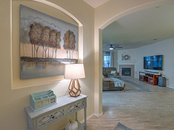 This large Centex layout is well planned with 5 bedrooms, 3 bathrooms, and an oversized loft. There's ample space for both relaxation and entertainment. The absence of carpet in most areas makes for easier maintenance, and the ceiling fans with remote controls are a nice touch for comfort. The finished garage is a great bonus to include an owned water softener. The turf in the backyard will be perfect for low-maintenance outdoor enjoyment. The loft is wired for surround sound which can be a great spot for movie nights or family relaxation. Plus, having a bedroom on the main level next to a bathroom is ideal for guests or multigenerational living. Overall, this home is thought out and ready for comfortable living! Solar panels can be assumed by the new owner or paid off w/acceptable offer.