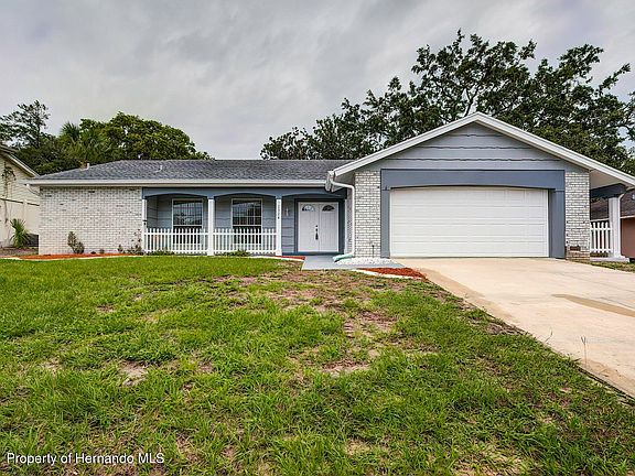 Active with Contract. Backup offers wanted. This beautiful home is located in the heart of Spring Hill only minutes away from parks, waterways, a beach, shopping, eateries and the Suncoast Parkway. This ample size home offers a desirable 3-bedroom, 2-bathroom split floor plan within 1759 sq.ft. of living area. There is another 793 sq.ft. divided amongst the oversized two car garage, rocking chair front porch and the rear screened lanai. Updates and refinements include a newer double door entry and hardware, newer garage door, brand new garage service door and hardware, brand new carpeting in the bedrooms, wood laminate in the L-shaped living / dining room and family room, new light fixtures, ceiling fans, electrical receptacles, electrical switches, cover plates, freshly painted interior and exterior, new irrigation system timer box, valves and sprinkler heads, brand new kitchen appliances (refrigerator, dishwasher, microwave and range/oven), and brand new vanity, sink and plumbing fixtures in the master bathroom. The master bathroom shower, tile floor and commode were remodeled in 2007. The guest bathroom tub / shower combo, commode, tile floor, vanity, sink, and plumbing fixtures were updated in 2012. The architectural shingle roof was completed in 2008 and was just inspected / certified by Foster's Roofing on May 12th, 2021. The AC compressor was replaced in 2011 and the air handler was replaced in 2018. Schedule your preview today!