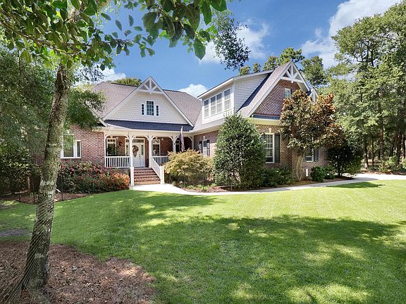 Look no further than this for your dream home along the coast of the South Brunswick Islands. This amazing property is located in the desirable gated community of Oyster Harbour, a short distance to the white sandy shores of Holden Beach and to the town of Shallotte. The home sits on over two-thirds of an acre of manicured lawn and gardens. In the back is a beautiful pond with a sparkling fountain. This well thought out home, with a split bedroom floor plan, has been designed with southern living in mind. It has a spacious open deck for grilling and enjoying the outdoors and a hot tub for cool evenings. There is also a cozy brick screened porch off a back bedroom. Inside there are so many wonderful features to enjoy, from the tiger wood floors, crown molding throughout, high ceilings and large windows that allow light to flow in and create a cheery atmosphere. In the great room, with cathedral ceiling, there is a massive floor-to-ceiling stone fireplace with adjoining built-in bookcases - the focal point of the room! There is a second fireplace in the keeping room off the kitchen and breakfast area. The kitchen has granite counter-tops, under/over cabinet lighting, upscale appliances and plenty of counter/cabinet space. It features a reverse osmosis water filtration system in both the sink faucet and refrigerator. There is plenty of room for dining, with a formal dining room, breakfast area and bar stools in the kitchen. The primary bedroom boasts trey ceilings and two walk-in closets. The primary bath has two vanities, a jetted tub, separate shower and water closet. The upstairs includes a large bonus room, fourth bedroom and third full bath. There is a wonderful sound system throughout much of the home and outside as well. Plenty of walk-in attic space to store your suitcases and seasonal decorations. Windows have hurricane film for protection and the cut glass window in the master bath has a metal shutter. Three zones for heating and air conditioning