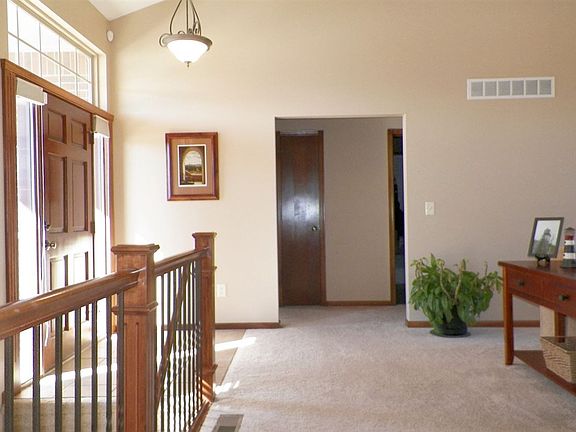 Gorgeous home on Newton's North side near high-school with easy access to highway. Quiet cul-de-sac. Built in 2005 with NO SPECIAL TAXES! The exterior finishes are stunning with a nice mix of stone and brick. The landscaping is beautiful and includes a sprinkler system and well. HUGE back yard with over sized covered composite deck. Walk out basement. Garage is over sized with insulated doors. The spacious interior has a nice open plan with vaulted ceilings and split bedroom plan. Kitchen has eat in area, eating bar, under cabinet lighting, desk, walk in pantry and includes all appliances. The fireplace is a big focal point when you walk in surrounded by windows. Beautiful! Master has seasonal closet, double sinks and deck access. Basement is fully finished with 4th bedroom, workout room, game room, wet bar and another gorgeous stone fireplace.