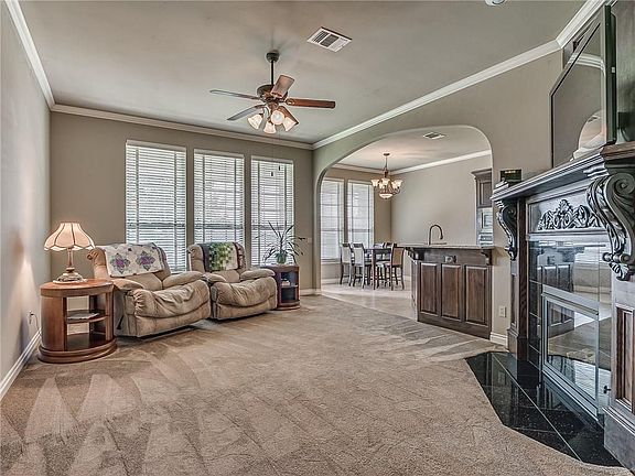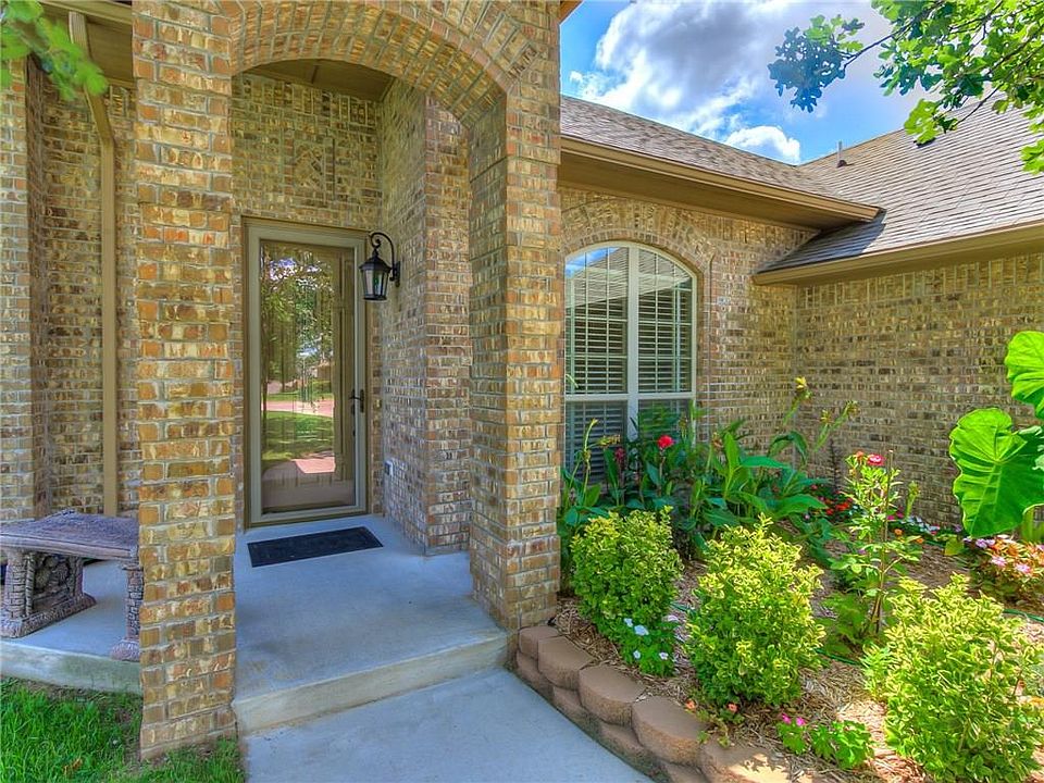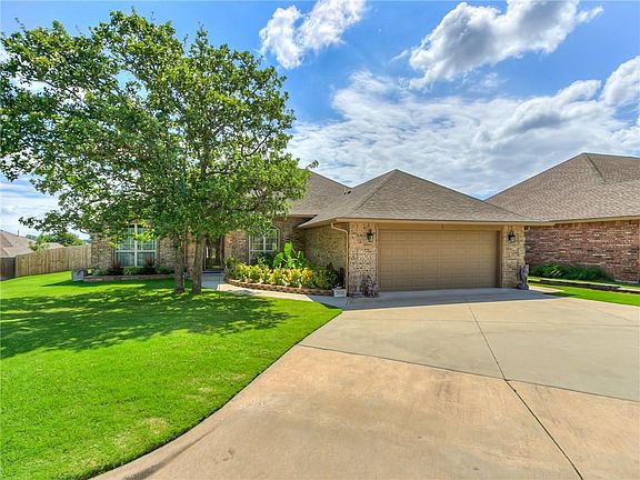 Beautiful home in picture perfect condition. This spacious 3 bedroom homes features a study, dining area, spacious kitchen with great counter space for cooking, large pantry, and lots of cabinets.The large living space includes a gas fireplace and large windows for great natural light. The huge master bedroom includes large windows, ceiling fan, a walk in shower, jetted tub, and a walk in closet. The utility room includes a mud bench, folding space, and lots of storage. The garage is spacious with a storm shelter. Additional features include a covered back patio and outbuilding. Bonuses are new carpet, new paint, custom wood blinds throughout, extra wide driveway, great storage spaces, large closets, beautiful wood work, salt free water softener and water purifier, and granite counters throughout. This desired neighborhood features a park, walking trail, and pond. It is located conveniently to I-40, Tinker AFB, Shopping, and restaurants.
