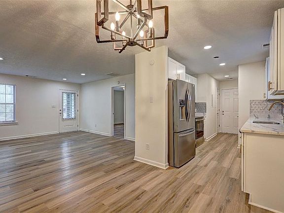 Welcome to this stunningly updated 4-bedroom, 2-bathroom home, where contemporary style and classic comfort come together. Nestled in a peaceful neighborhood surrounded by mature trees, this home boasts a spacious front porch, perfect for enjoying morning coffee or evening relaxation. Step inside and be captivated by the gourmet kitchen, featuring marble countertops, high-end stainless steel appliances, custom cabinetry, and a stylish backsplash. The open-concept layout seamlessly connects the kitchen to the living and dining areas, creating an inviting space for entertaining. Retreat to the luxurious master suite, complete with a spa-like en-suite bathroom, floating sinks, and an exquisite glass-enclosed rainfall shower. The sleek, modern finishes and marble-inspired tilework add a touch of sophistication. Outside, the large backyard and extended deck provide ample space for outdoor gatherings, gardening, or simply unwinding in your private oasis. With a existing roof, updated plumbing, electrical, and HVAC system, this home is move-in ready! Located just minutes from top-rated schools, shopping, and dining, this one-of-a-kind property is the perfect blend of style, function, and convenience. Don't miss out—schedule your private tour today!