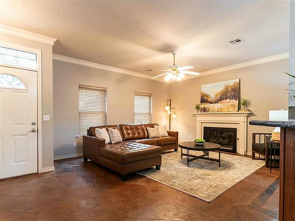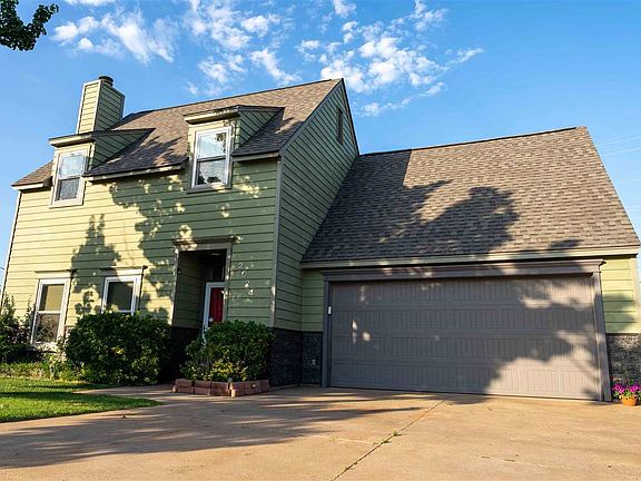 Wedgewood is a great neighborhood to call home! This house has all the fun going on! Gazebo and covered patio on the east side, hot tub, mounted TV, serving bar and more! Inside boasts of new paint downstairs, stained concrete floors, updated appliances and updated sliding door to patio. Brand new roof, inground sprinkler system, flat-safe storm shelter, privacy fence, large backyard, lots of extras here! Primary bedroom suite on the first floor plus a half bath for guests on first floor too. Large upgraded shower and two sinks in downstairs bath. Upstairs has two bedrooms, roomy closets, and a full bath with tub/shower unit. Attractive cul-de-sac and this location is convenient to shopping and schools.